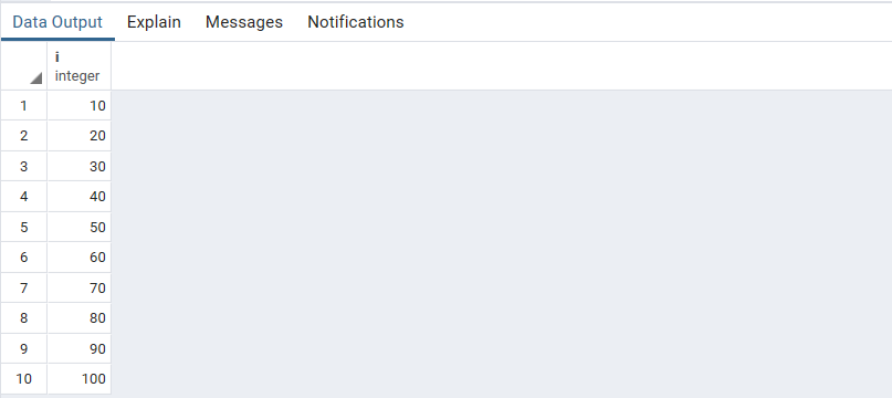 SELECT i+10 FROM cte WHERE i+10<= 100