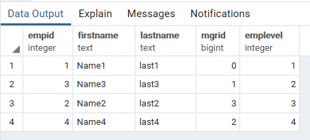 WITH RECURSIVE CTE(EmpID, FirstName,