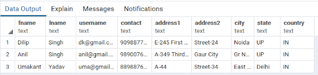 in the ADDRESS table, the values of the columns in the ADDRESS table are