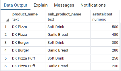 SELECT p.product_name,sp.sub_product_name,(p.cost+sp.cost)asTotalCost