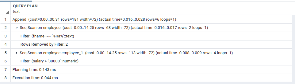 EXPLAIN ANALYZE of UNION and UNION ALL operator